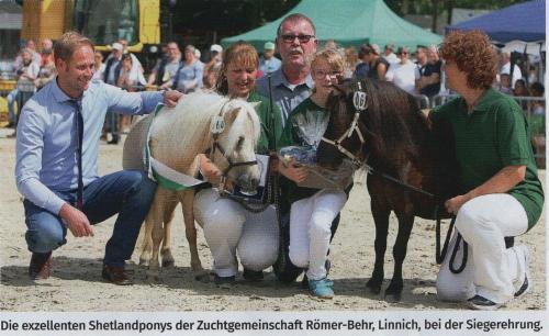 Kommentierung der Preisrichter: "..Hier sehen Sie die schönsten Shetlandponys des Landes.." "..und bei den Shetlandponys gibt es Sieger zu küren: Die besten Shettys gab es zu küren und da hatten wir ein Phänomen dieses Jahr, dass alle Shettys, die herausragend waren, die besonders waren, egal in welcher Größe alle einen Vater hatten: den Carlos der Zuchtgemeinschaft Römer/Behr aus Linnich. Dazu mal ein ganz besonderer Applaus, das hatten wir noch nie!!! Alles was gut war hatte den gleichen Vater: Carlos ..."